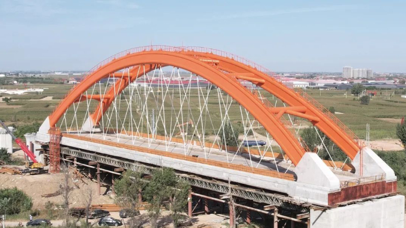 近日,跨捷地堿河特大橋主體鋼構順利完工??缃莸貕A河特大橋全長131米,為下承式有砟軌道雙線簡支拱高速鐵路橋,主要承重結構為提籃式鋼管拱肋及尼爾森吊桿體系,拱肋用七百余噸重型鋼結構件及所有吊桿用鋼纜,均由巨力索具股份有限公司制造,安裝。