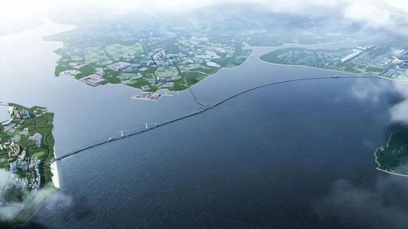 寧波至象山市域(郊)鐵路象山港跨海大橋主橋邊跨結合梁架設,巨力索具鋼箱梁吊具全程保障項目吊裝。