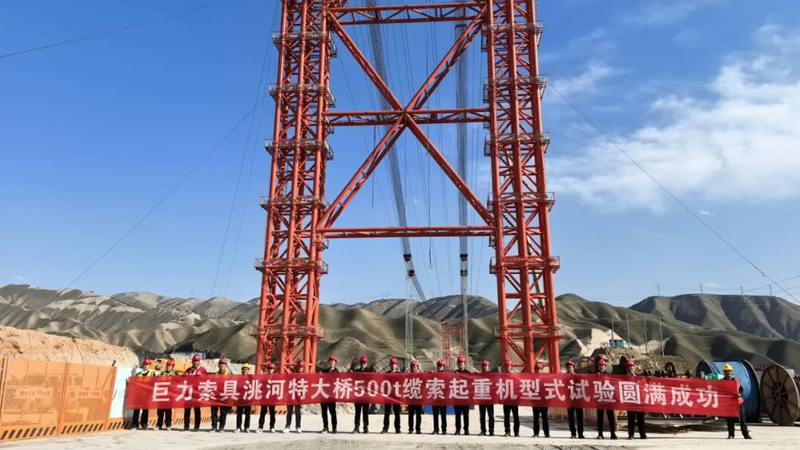 蘭永臨高速公路關鍵控制性工程洮河大橋500噸大型纜索吊裝系統試吊完成,標志著我國西北地區在建最大上承式鋼管混凝土拱橋建設取得關鍵突破,巨力索具吊裝系統成功為大橋主體施工按下“加速鍵”,大橋正式邁入主體結構施工階段。