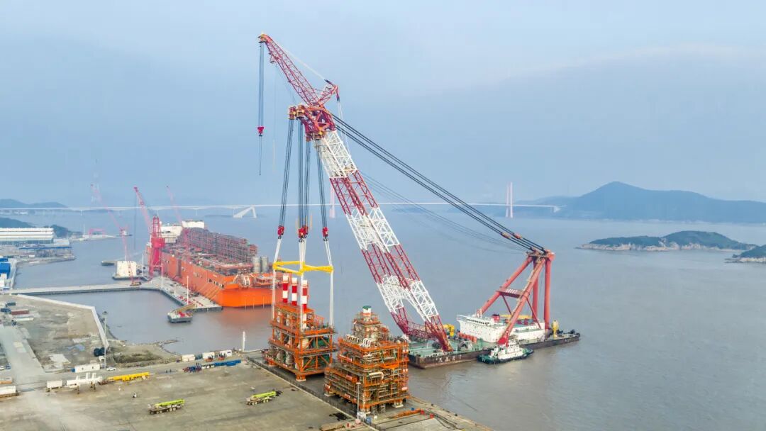 在FLNG模塊吊裝過程中,巨力索具5000T吊梁需在極限環(huán)境下保持毫米級定位精度,確保重約4.1萬噸的上部模塊與船體精準對接。巨力索具項目團隊通過先進的均力控制系統(tǒng),確保了在整個起吊過程中,模塊始終保持最佳姿態(tài)與平衡,最終對接成功,為后續(xù)工作奠定了堅實基礎。