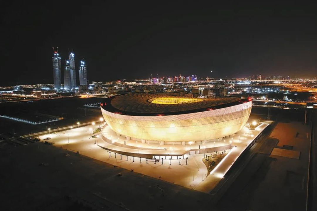 盧塞爾體育場是2022卡塔爾世界杯主體育場,最多可容納92000人。該體育場外形以阿拉伯椰棗碗和琺瑯燈籠為設計靈感,屋頂為雙曲面構造,造型呈馬鞍形,東西高,南北低,整個體育場投影為圓形。屋面主索網采用魚腹式索網結構,跨度達到274米,最大懸挑距離為76米,該結構形式為首次應用,無論是對產品的制造,還是施工安裝都具有極大的挑戰。因此盧賽爾體育場也成為了全球最大跨度雙層交叉索網屋面單體結構。同時也是設計標準最高的索網屋面單體建筑。整個索網結構從產品原材料到成品制造以及施工安裝均超過了歐美標準要求,巨力索具憑借過硬的實力成為一級專業分包,負責執行整個屋頂索膜結構體系的設計、供貨、安裝總承包工作。